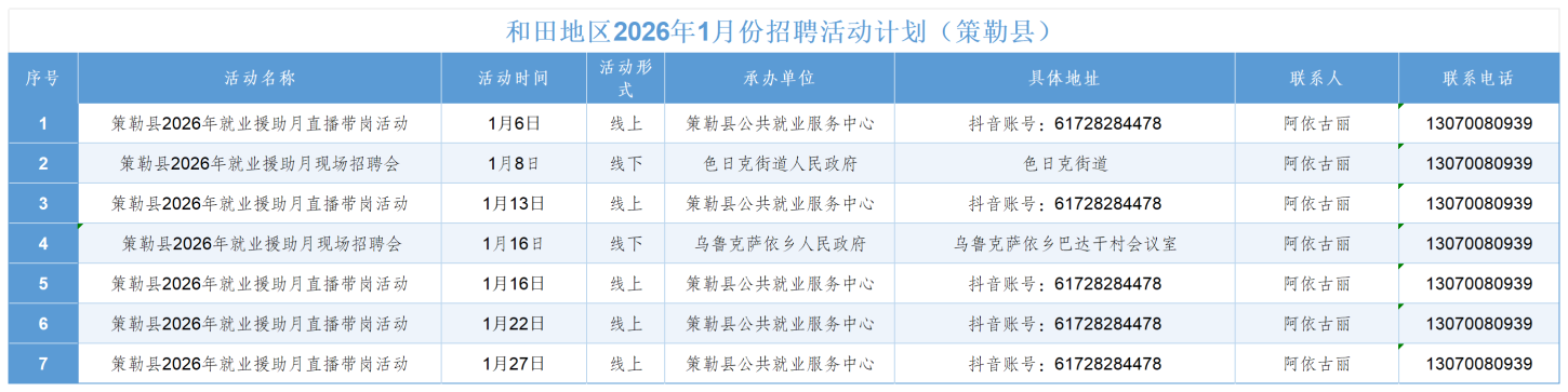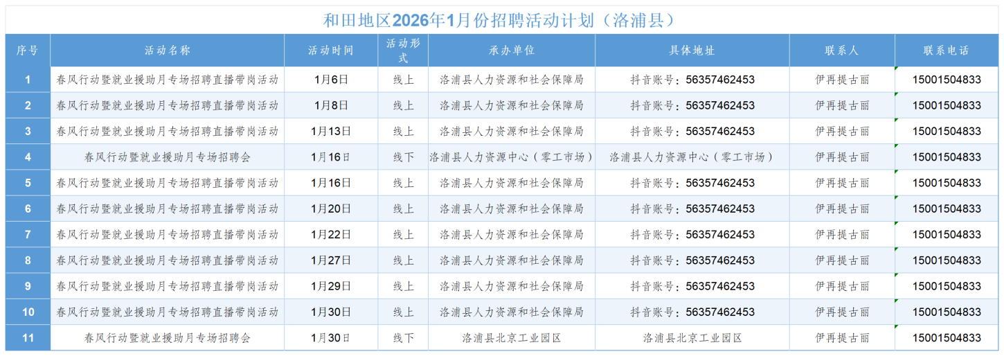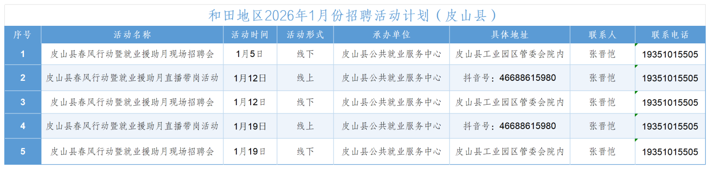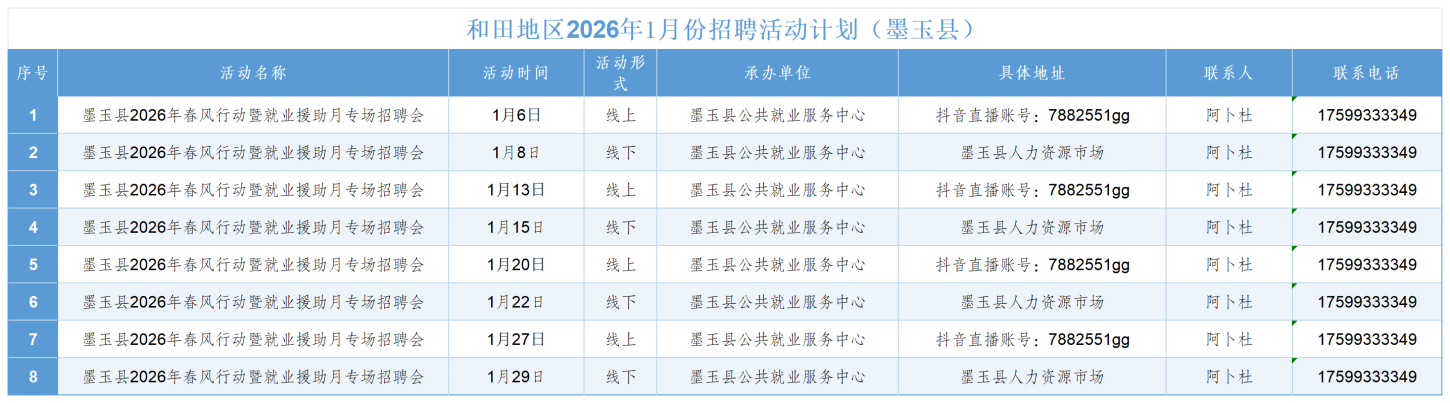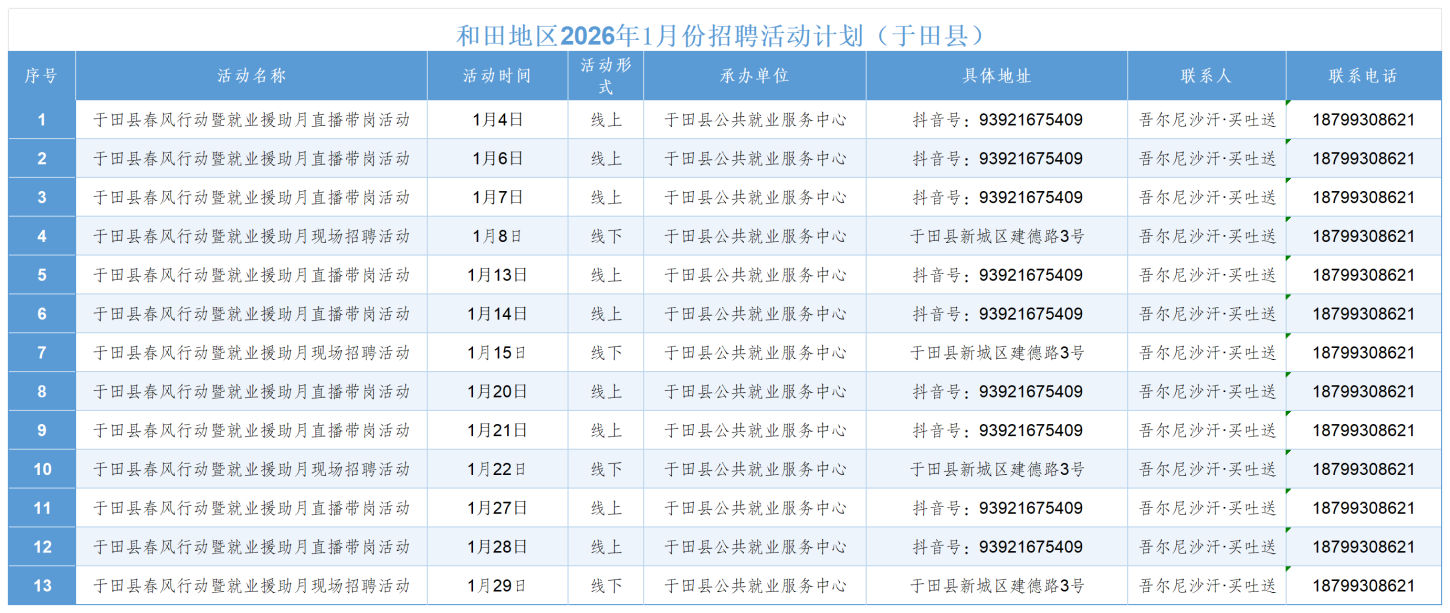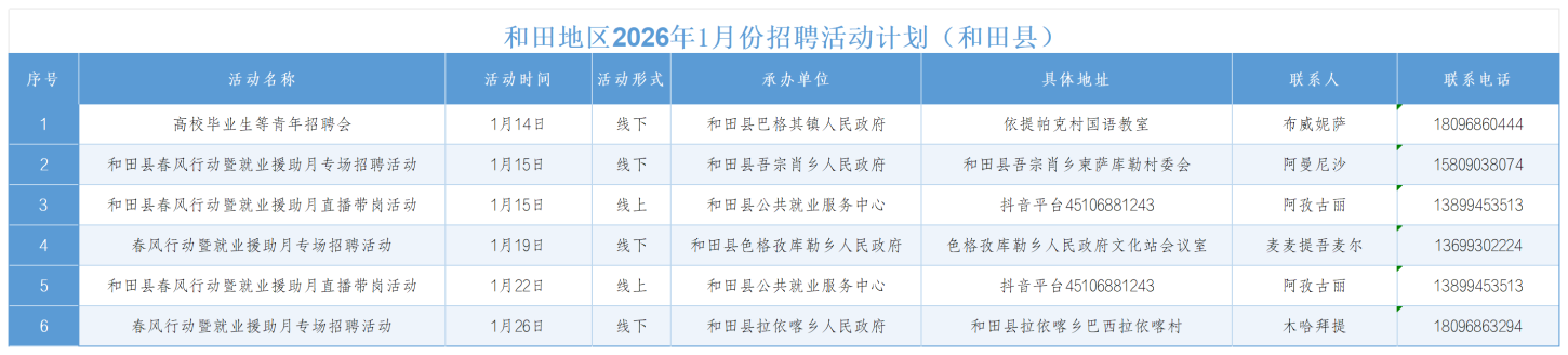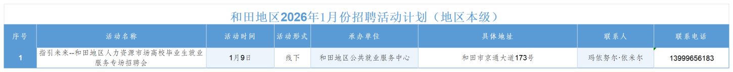 和田地区2026年1月份招聘活动计划